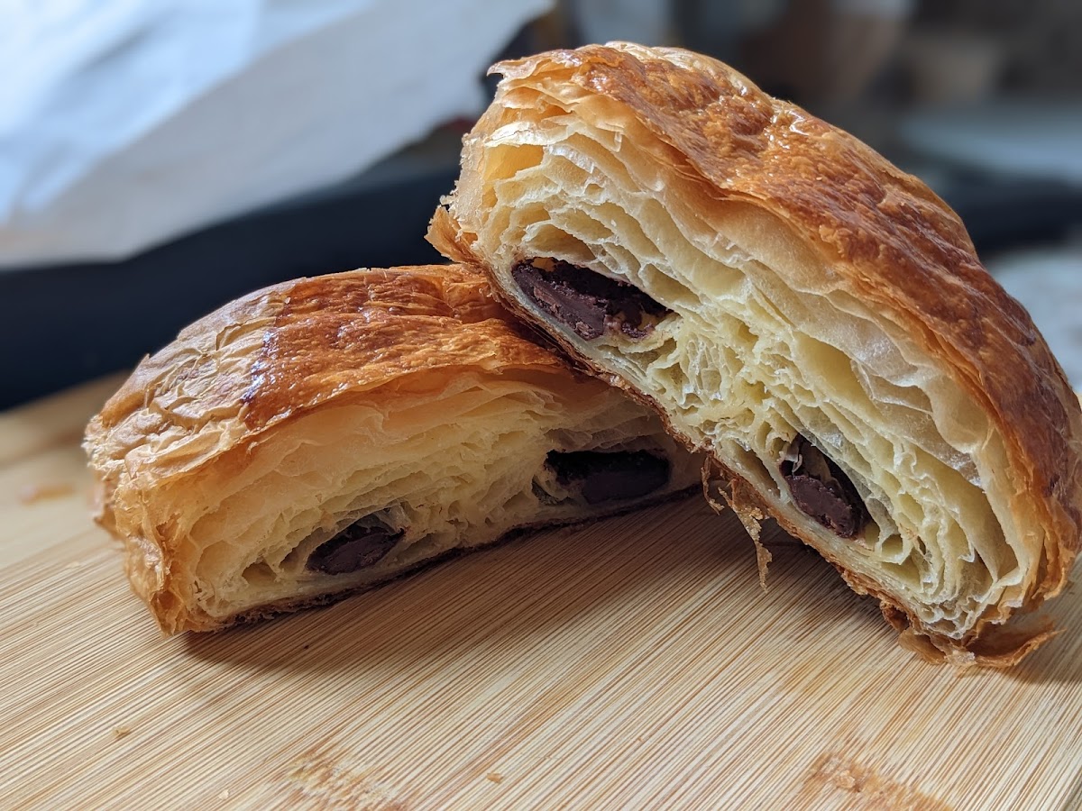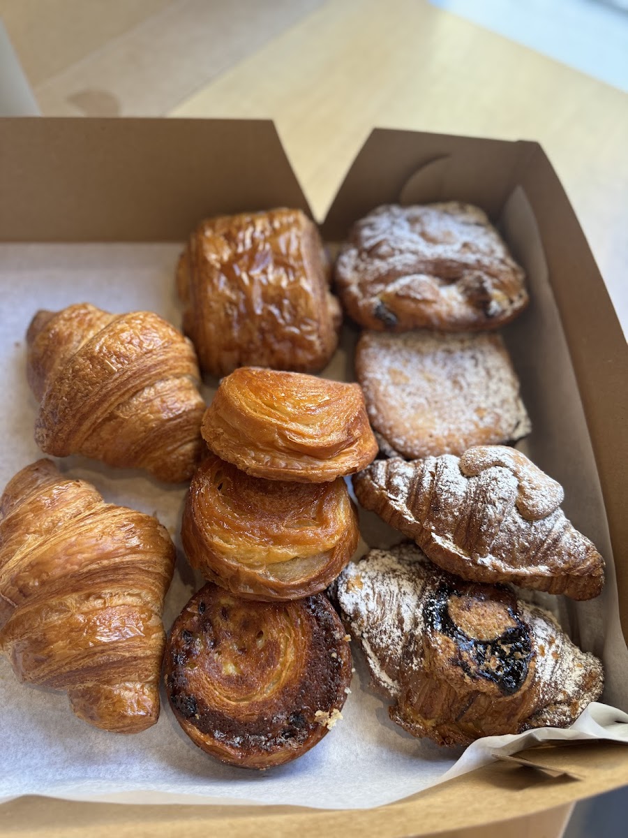 Met up with a friend to try their croissants! We went at 11:30 am on a Saturday and even with the line going down half the block, we waited only about 15 minutes which was faster than I expected. They had a written menu that you could see outside before you ordered. The place was small and had no seating inside but I got my item immediately. Chocolate Croissant - What surprised me was how massive the croissant was but at the same time, it was so flaky and crunchy. They also add so much chocolate into their croissant that is perfectly melted and you really get chocolate in each bite. I also tried some of my friend's chocolate almond croissant which was also really good with the added almond paste and powdered sugar on top. Highly recommend checking it out if you're craving a croissant or some classic baked goods.